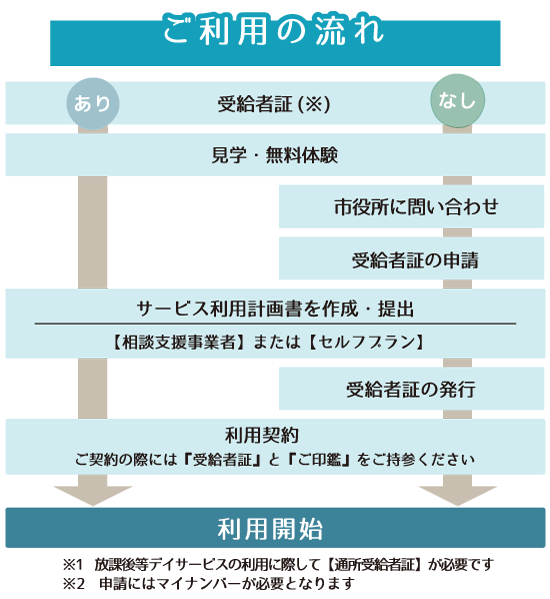 料金のご案内(利用者負担額) 利用料金 放課後等デイサービスは市区町村発行の受給者証があれば9割が自治体負担となり、1割が自己負担となる制度です。 負担額は世帯の所得によって上限が設定され、それを超えて負担することはありません。(※実費は別途) 世帯所得 利用料金 非課税世帯 0円(無料) 世帯所得約890万未満 月額上限4,600円 世帯所得約890万以上 月額上限37,200円 実費でご負担頂く料金 ・事業所外活動にかかる費用等 ・学習内容に応じた教材費 見学・体験申込のお問い合わせ